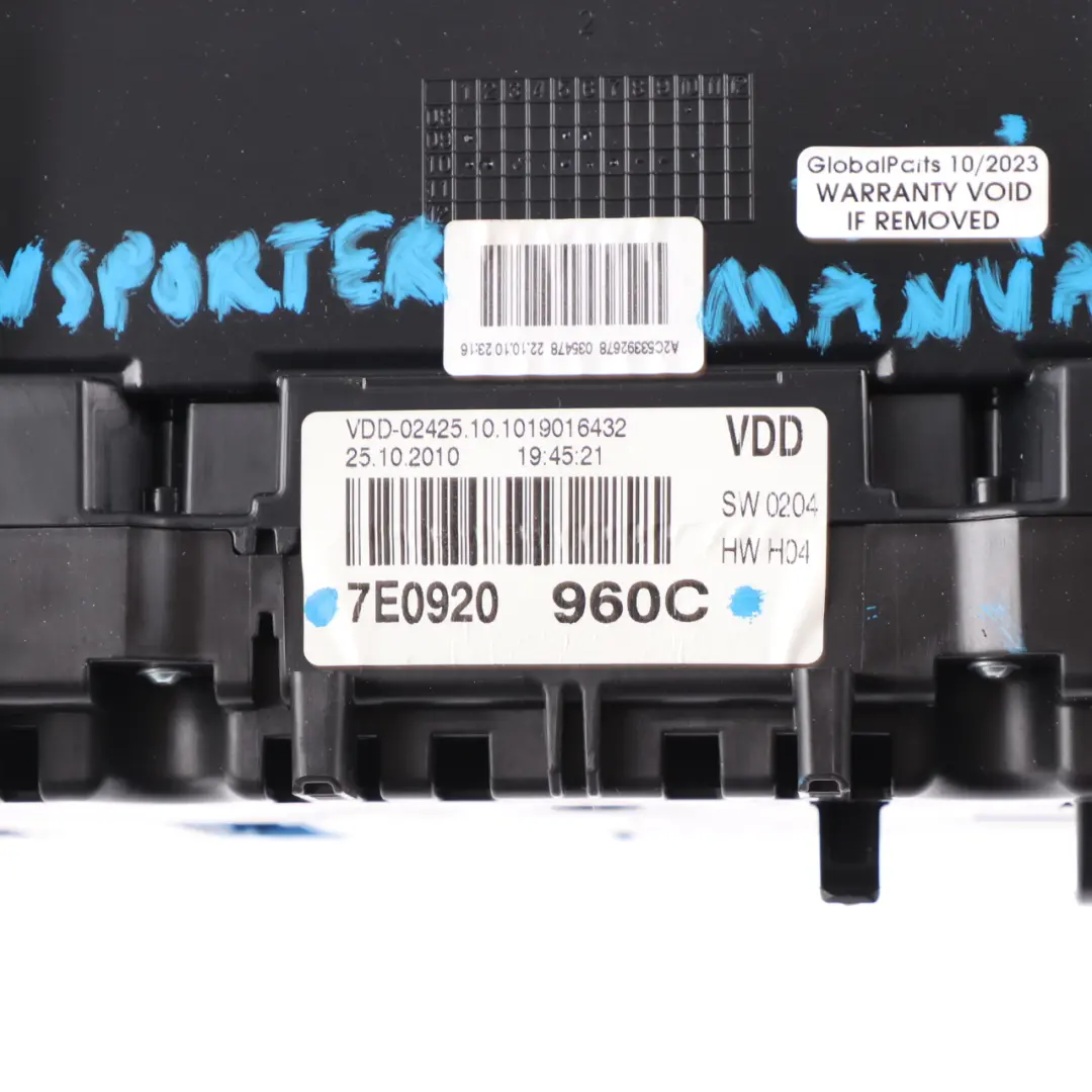 VW Transporter T5 Diesel Instrument Cluster Speedo Clocks Manual 7E0920960C